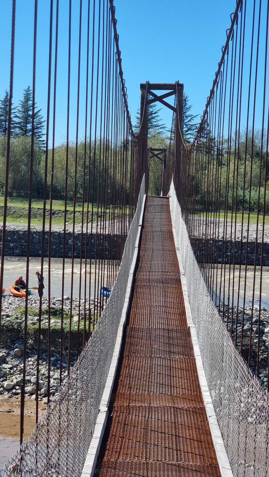3. den: ještě jeden úsek na řece Rioni. Dnes vplujeme do úžasného skalního kaňonu, řeka trochu zdivočí a pěkné hravé peřeje střídají odpočinková místa jako stvořená ke kochání se okolní nespoutanou přírodou. Obtížnost WW II – III. Krátká vycházka ke skalním věžím Sairme Pillars. Odpolední přesun do údolí Tskhenistskhali a ubytování v malém horském městečku Lentekhi, výchozím bodem na vysokohorské túry do pohoří Svaneti.