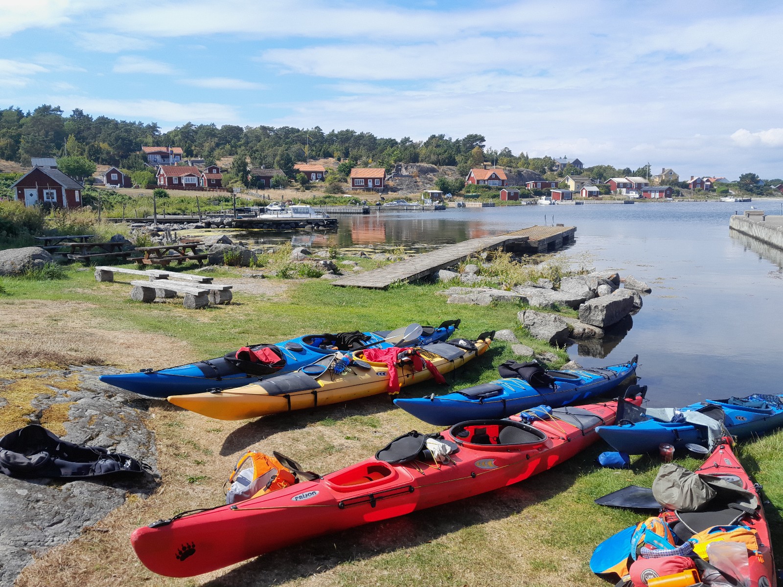 2. - 7. den: krátký přesun na místo, odkud vyplouváme a ještě si dokoupíme čerstvé potraviny. Nabalíme lodě a dáme si nezbytnou instruktáž před vyplutím. První destinací bude souostroví Listerby v samotném srdci Blekinge. Malé, ale velmi pěkné souostroví. Některé z ostrůvků vás překvapí, protože jsou porostlé mohutnými listnatými stromy, což je pro sever neobvyklé. Tráva je spásána zvířaty a tak se dá pěkně vystupovat k prohlídkám pobřeží, k protažení a piknikům. Podle počasí a směru větru se pak rozhodneme, na kterou stranu se podél pobřeží vydáme. Zdali na východ k Torhmn a přírodní rezervaci Uttorp, či západně na Ronneby, přes ostrov Saltärna. Ostrůvků jsou zde stovky a můžeme se mezi nimi v závětří toulat po libosti. Poslední den odpoledne se vracíme k autu. Sbalíme kajaky a přesuneme se na noční trajekt zpět do ČR.