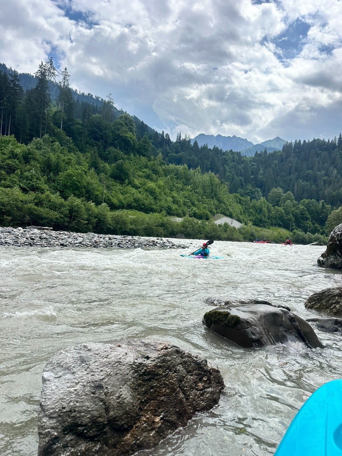 Landquart: poctivá horská řeka obtížnosti WW III – IV. Podle kondice skupiny právě tady můžeme lehce přitvrdit a přehoupnout se do další kapitoly pádlování. Zde uplatníme již všechny nabité dovednosti, které k ježdění v partě patří. Prohlížení exponovaných míst, jištění atd. Jasně modrá voda, široká škála peřejí a jedinečná břidlicová soutěska.
