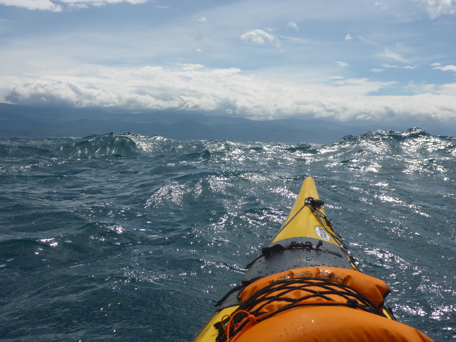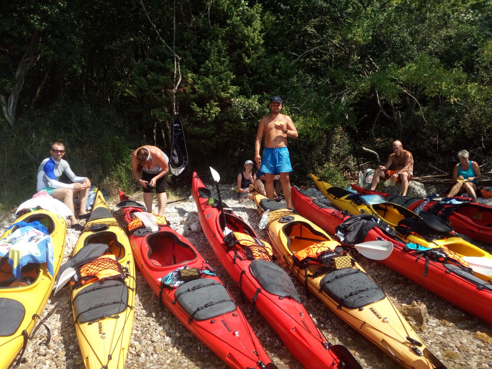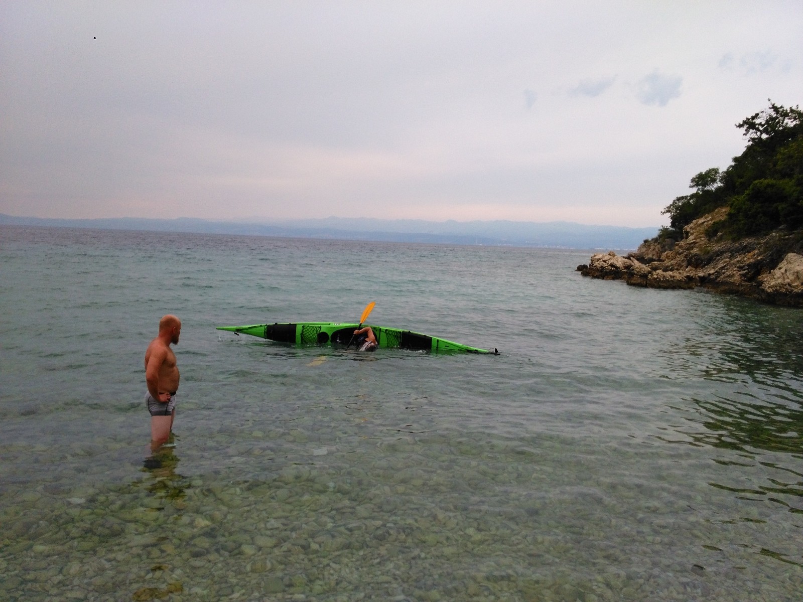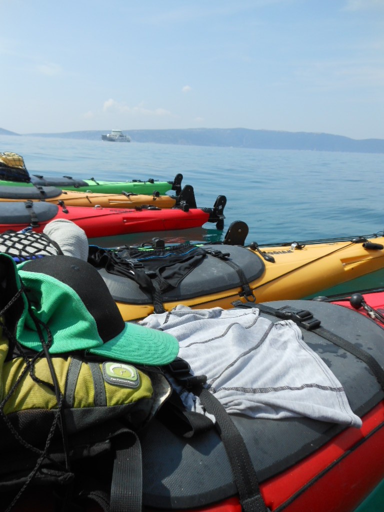 2. den: ráno dokoupíme potraviny a vodu, přebalíme věci do seakayaků, instruktáž před vyplutím a první kilometry podél pobřeží.