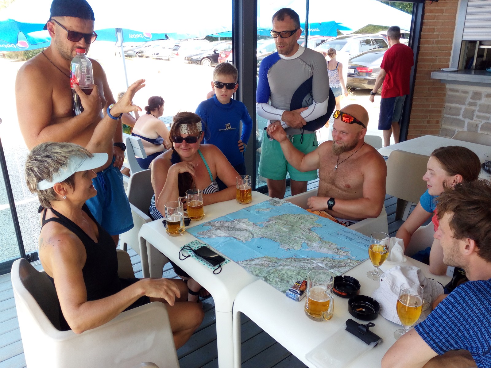 Jídlo: jídlo si částěčně vezete z domova a jinak si denně kupujeme pitnou vodu a zásoby v marínách. Min. na jedno jídlo denně si můžete zajít do restaurace.