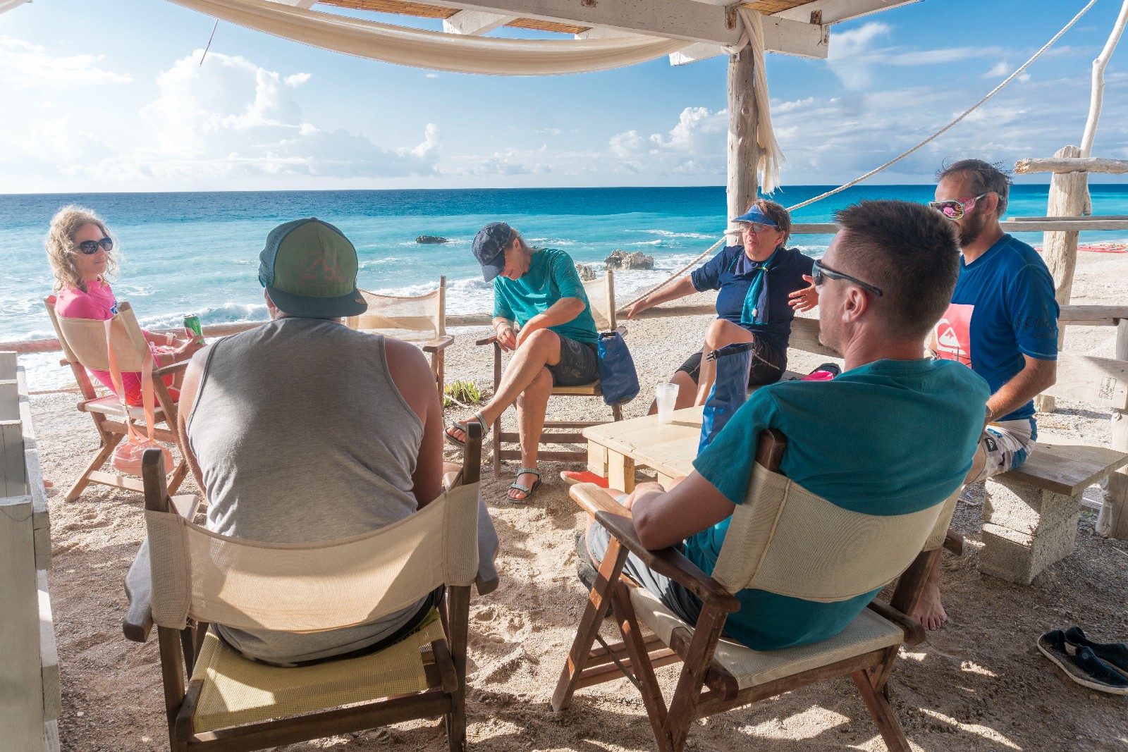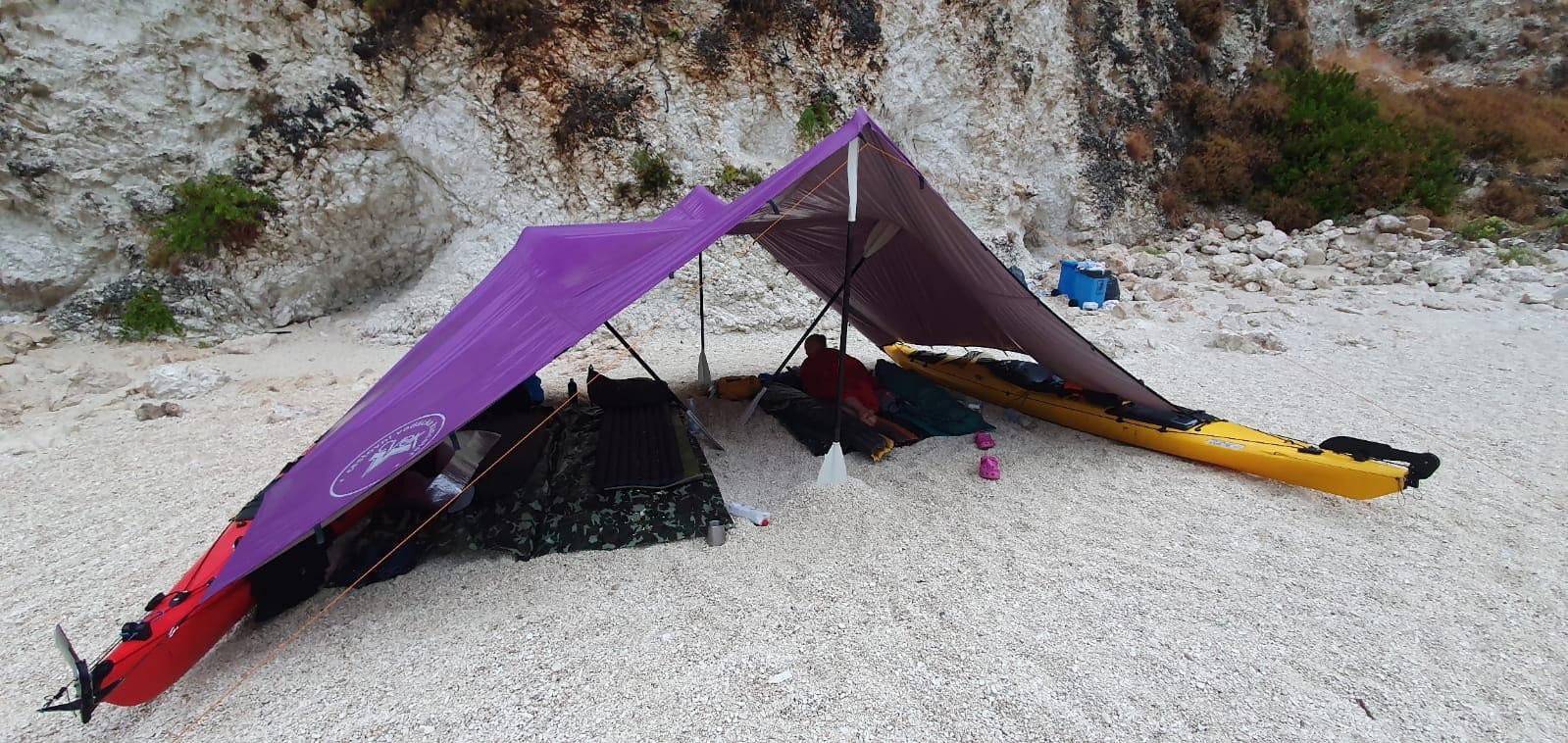Noclehy: spíme v zátokách, které jsou často přístupné jen z moře. V případě špatného počasí pod stanem, jinak stačí pouze tropiko.
