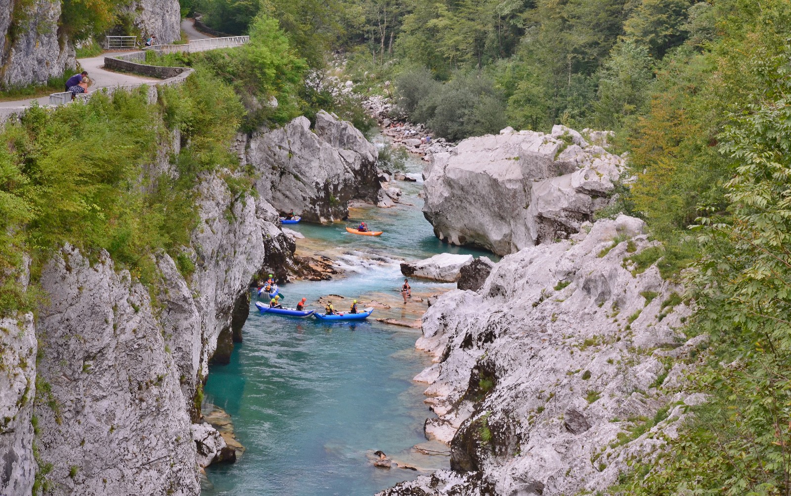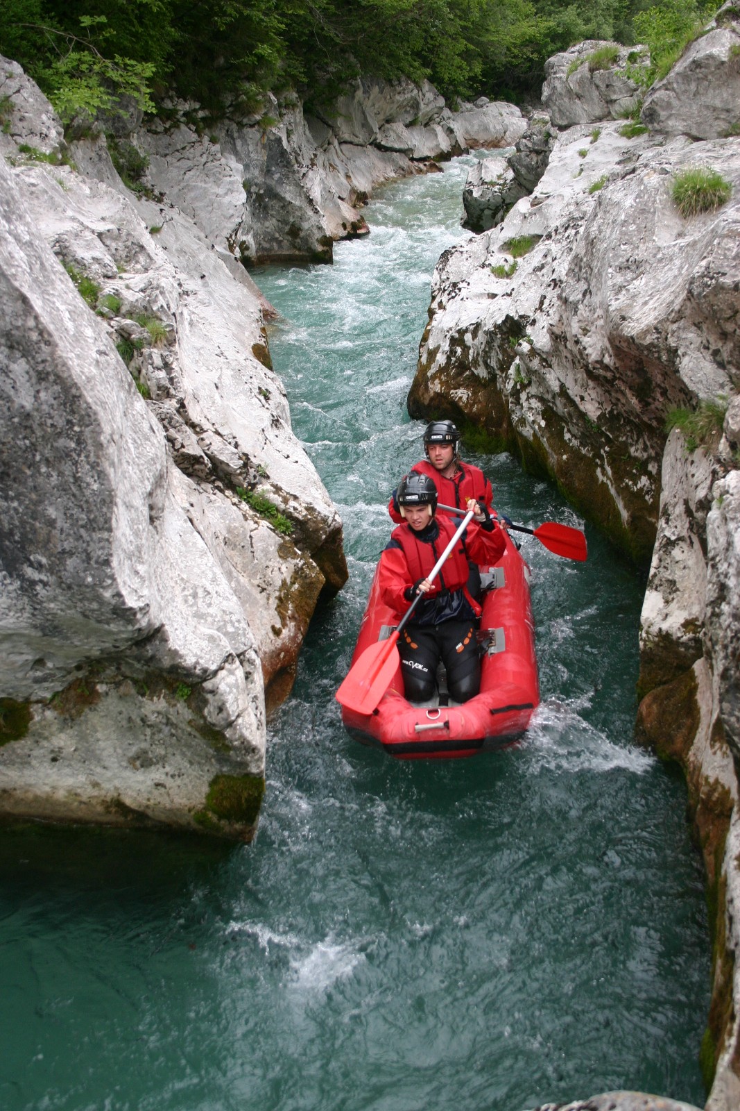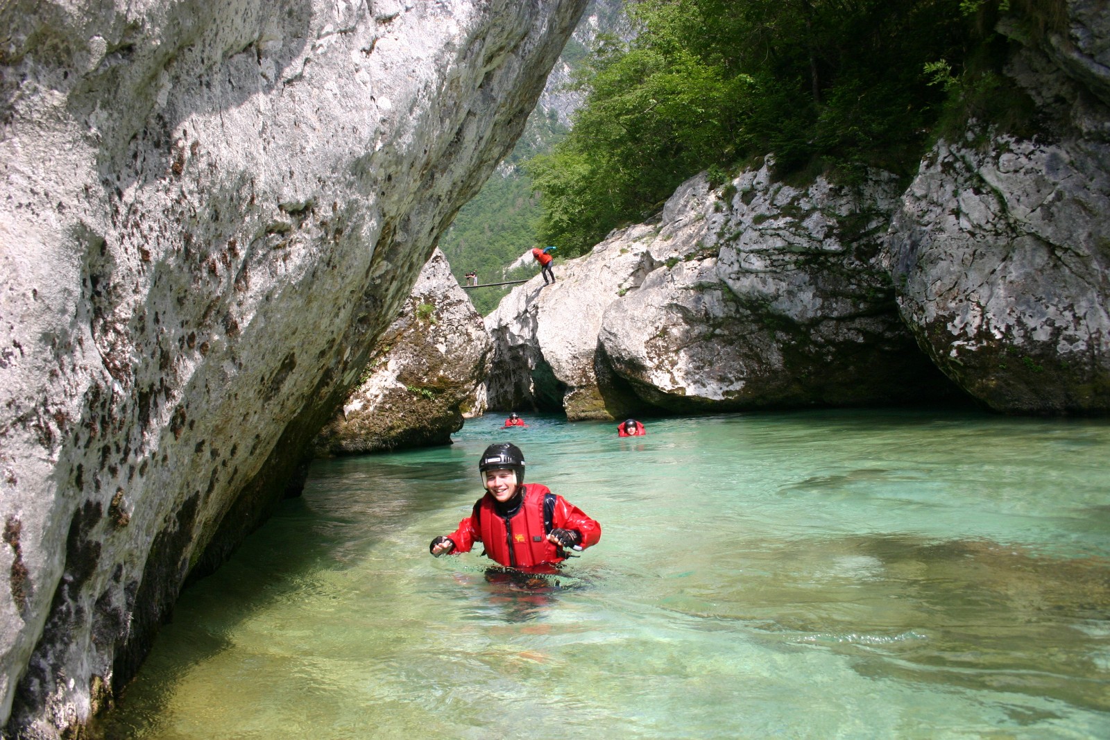 3. den: kaňon říčky KORITNICA. Ještě než vlezeme do kaňonu, podnikneme krátký průzkum válečného opevnění a pevnosti Kluže, pod kterou v hluboké soutěsce KORITNICA uhání. Pod nesjízdnou průrvou nasedneme a splujeme divokou a místy dost úzkou hravou říčku. Vplujeme do SOČI a užijeme si ještě další vodu. Navečer ještě podnikneme výlet k pramenům Soči.