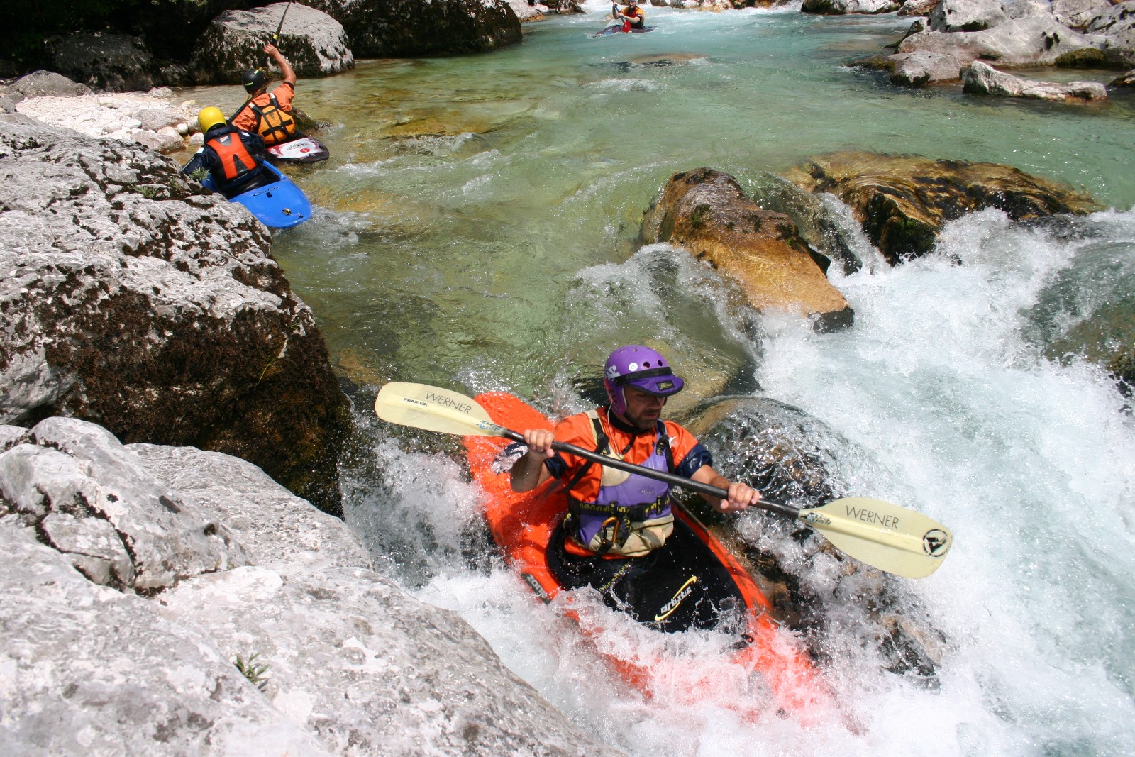 2. den: vydatná snídaně a protažení po noční cestě a jdeme na vodu. Rozpádlujeme se na jednodušším úseku SOČI a budeme postupně přidávat na obtížnosti. SOČA nabízí krásné vracáky, kde se dá pěkně zastavovat a vyjíždět do proudů a tak pojmeme první den na vodě jako zdokonolovací kanoistickou školu. Ubytujeme se v kempu další dvě noci. Kdo bude chtít vyrazí s námi na prohlídku Bovce a na soutěsky Soči.